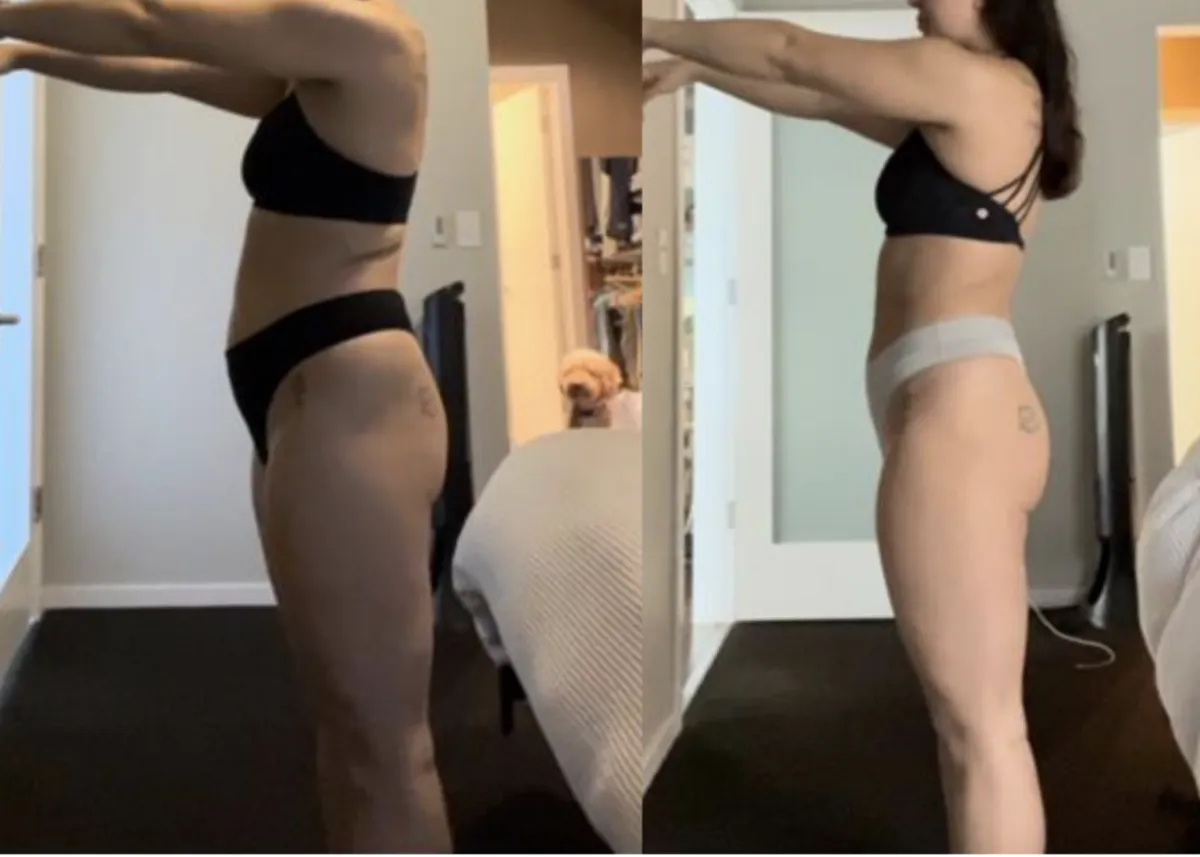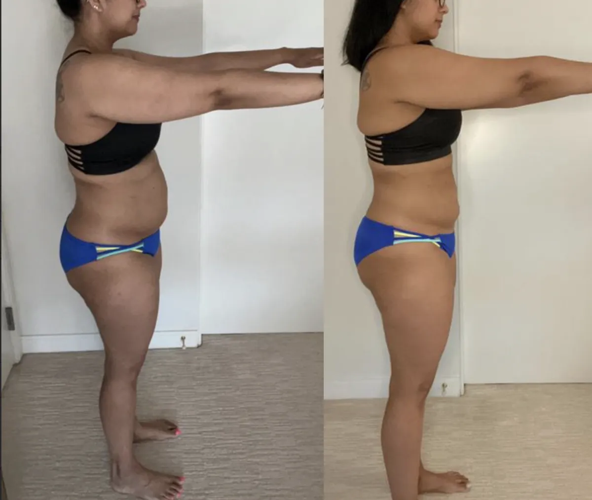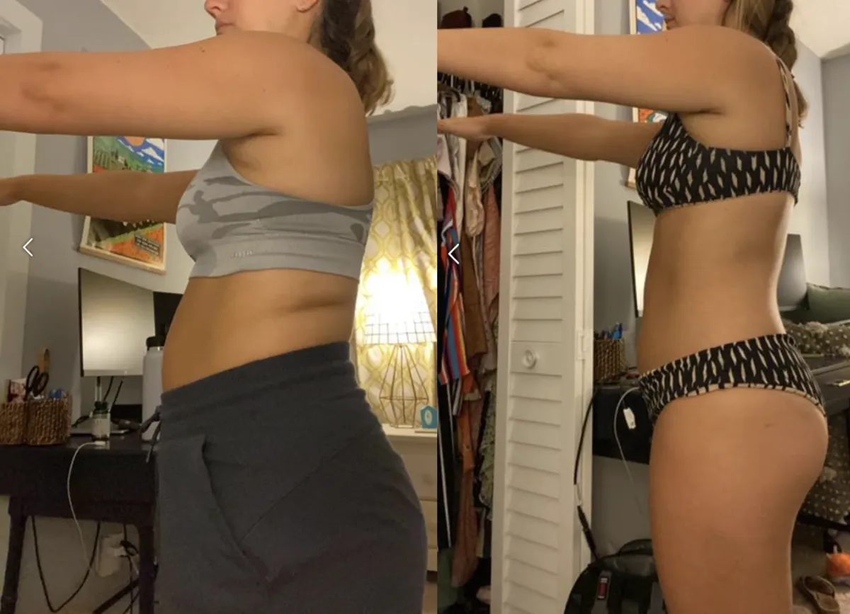 "O. M. G. I am crying. This is one year of hard work and cleaning up my eating. This is also one year of pretty much no alcohol. I can’t process how different these photos are." - Kate