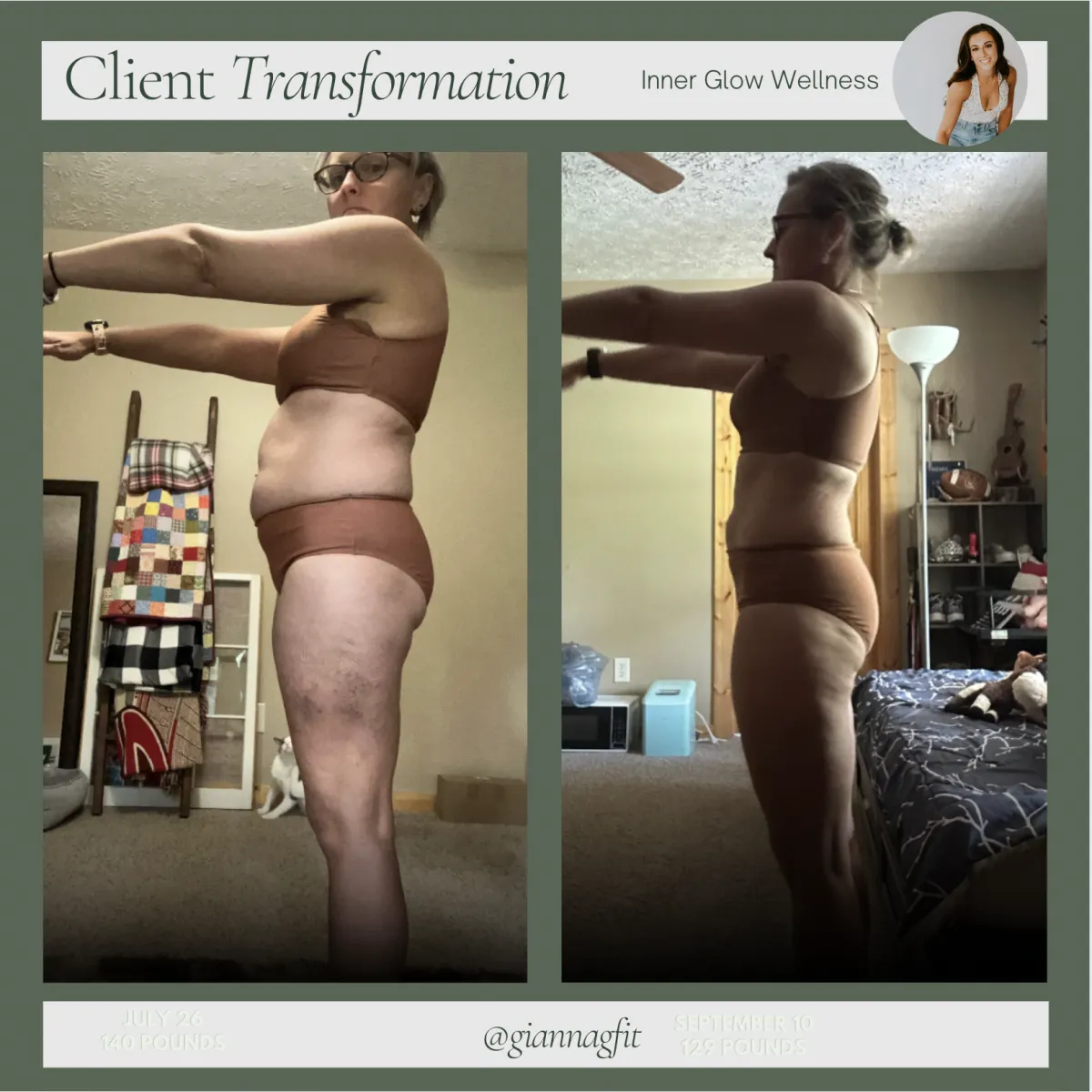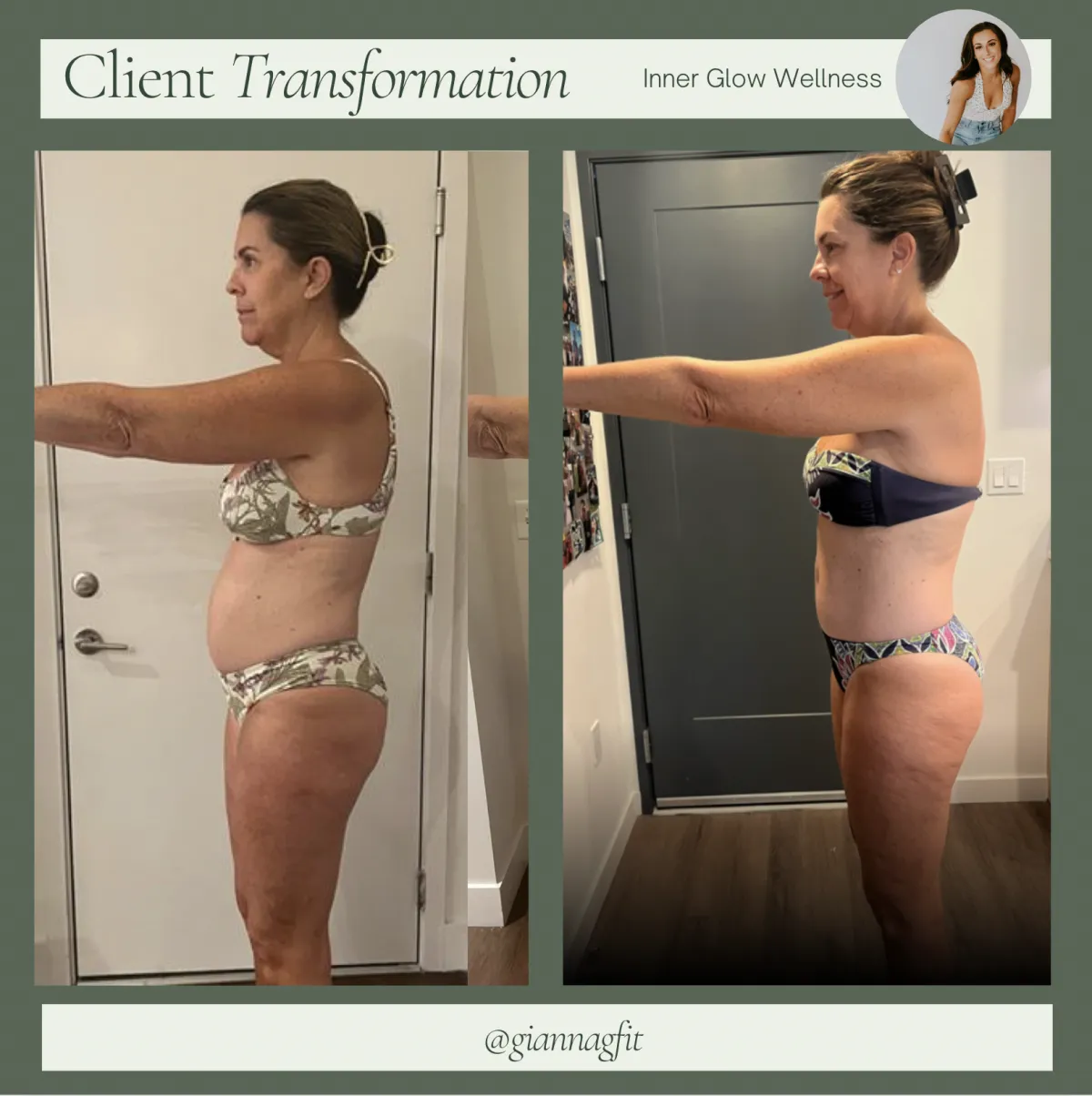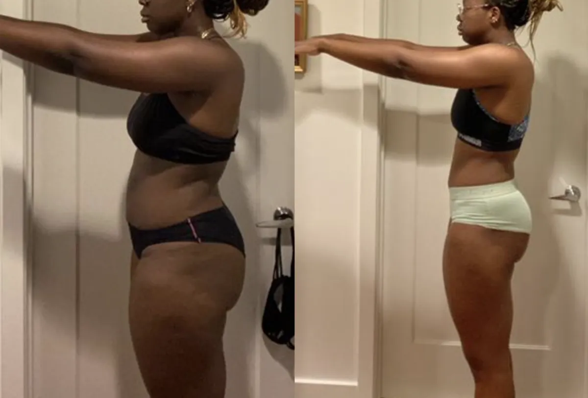 "O. M. G. I am crying. This is one year of hard work and cleaning up my eating. This is also one year of pretty much no alcohol. I can’t process how different these photos are." - Kate